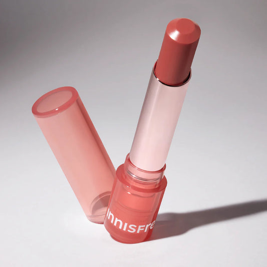 Innisfree Dewy Tint Lip Balm shade is a sophisticated lip balm with SPF that deeply moisturizes and enhances your natural lip color. Made with botanical oils and hyaluronic acid, this balm hydrates, nourishes, and maintains the suppleness of lips all day. Application: Use as a base under lipstick for extra moisture or before going outside for SPF advantages.