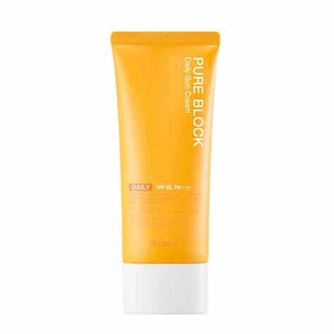 Introducing the A'PIEU Pure Block Daily Sun Cream, a lightweight and non-greasy sunscreen designed for daily use.